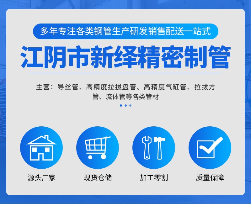 不鏽鋼氣缸(gāng)管是一種通過冷拔或熱軋(zhá)處理後的一(yī)種高(gāo)精密的鋼管材料。由於精密鋼(gāng)管內外壁無氧化層、承受高壓(yā)無泄漏、高精度、高光潔度、冷彎不變形(xíng)、擴口、壓扁無裂縫(féng)等特點(diǎn),所(suǒ)以主要用來生產氣(qì)動或液(yè)壓元件的產品,如(rú)...